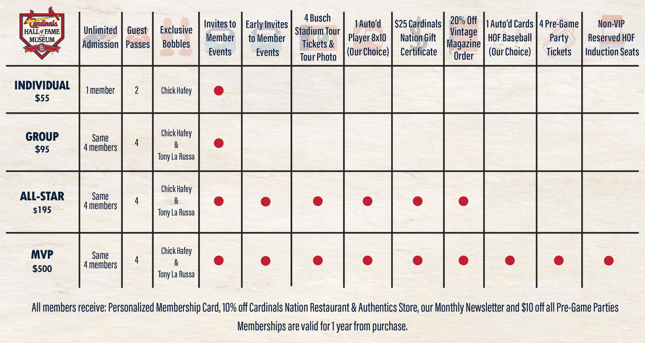 - $500 discount off Fantasy Camp (good for one Fantasy Camp per year while your membership is active)