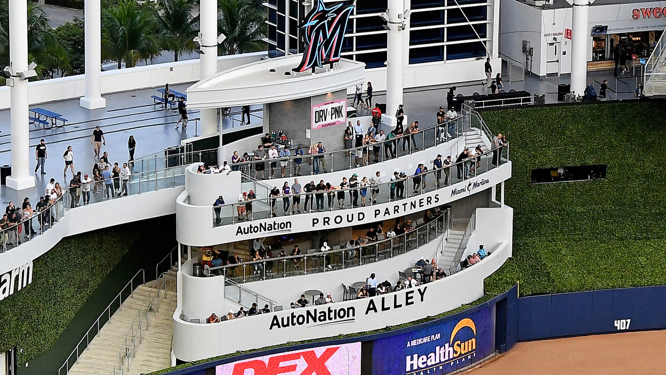 AutoNation Alley, la nueva área social en el jardín izquierdo-central, es una estructura de plataforma de visualización escalonada con tres niveles primarios. Los titulares del Estrella Jalisco Party Pass tienen acceso exclusivo al nivel medio de AutoNation Alley.