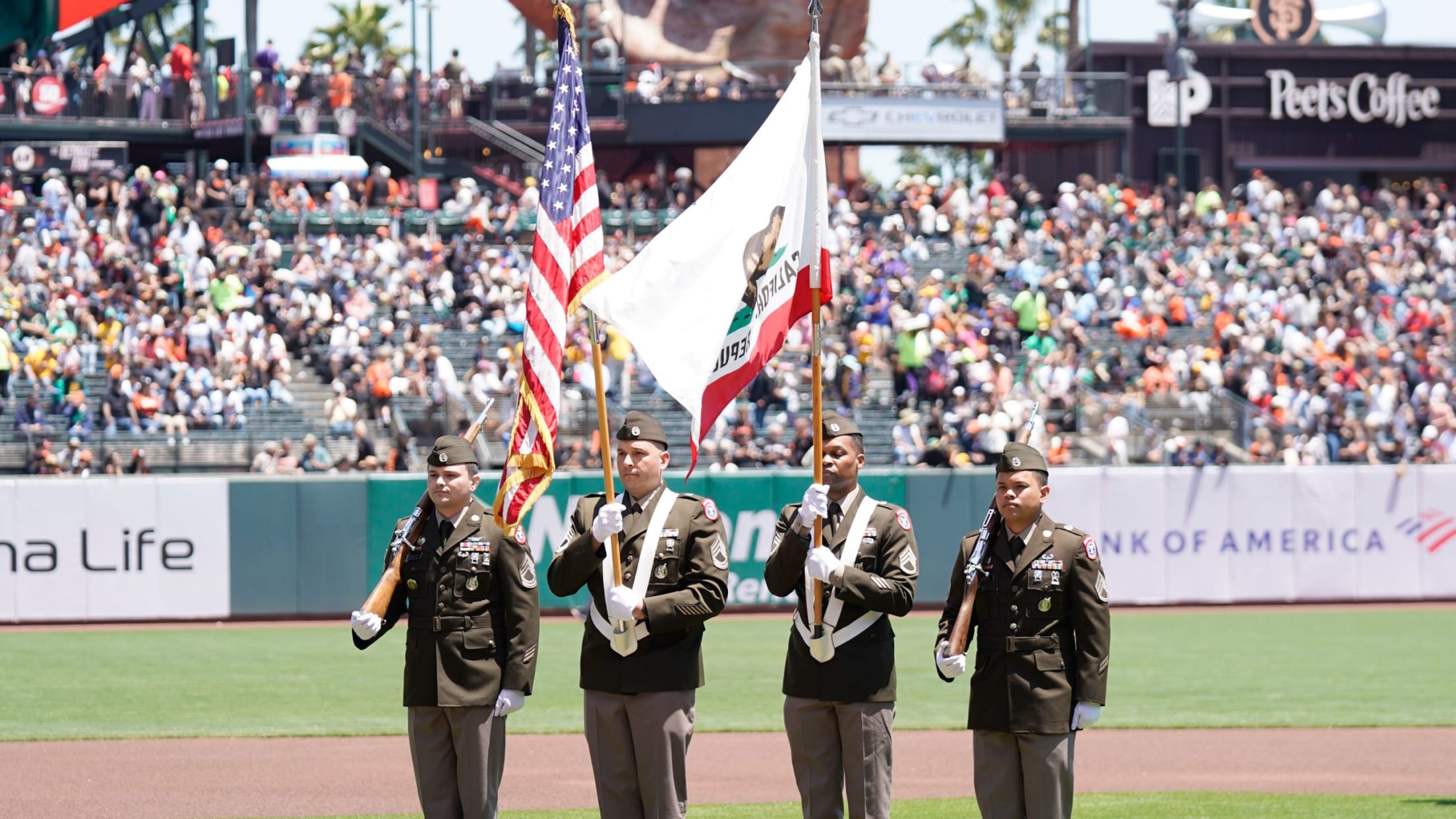 In solidarity with MLB, the Giants observe Armed Forces Weekend every season to salute all active military members, veterans and their families. The Giants team dons special Armed Forces caps while military members and the nonprofit organizations that serve them are celebrated throughout pregame and in-game festivities.