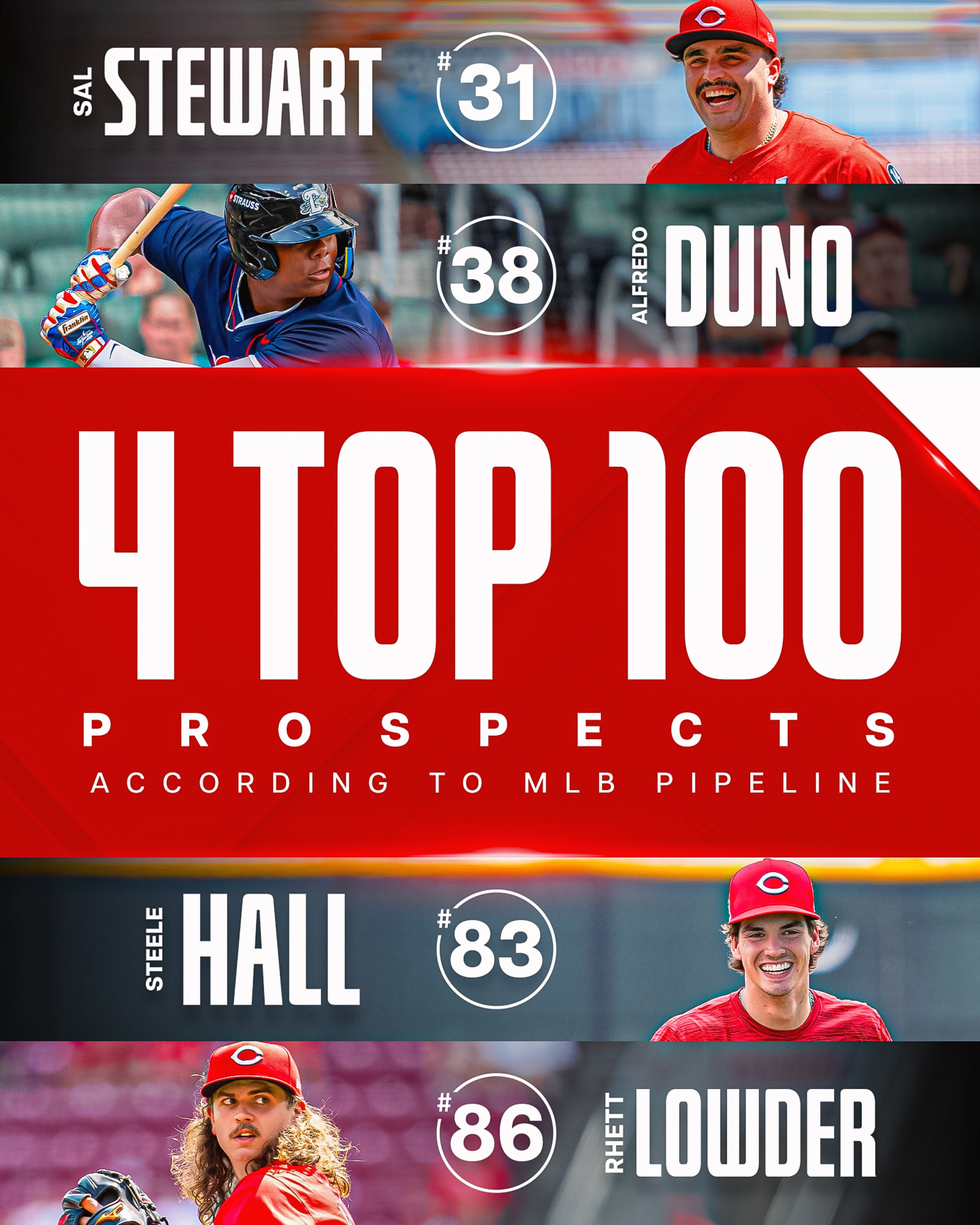 The Reds have four players currently ranked in MLB Pipeline's Top 100: