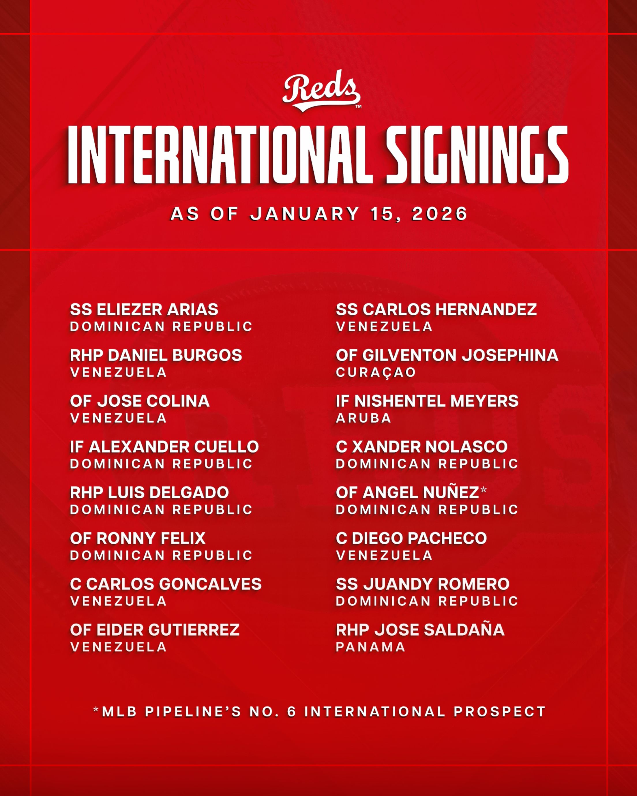 - No. 6 international prospect Angel Nuñez leads Reds' haul
