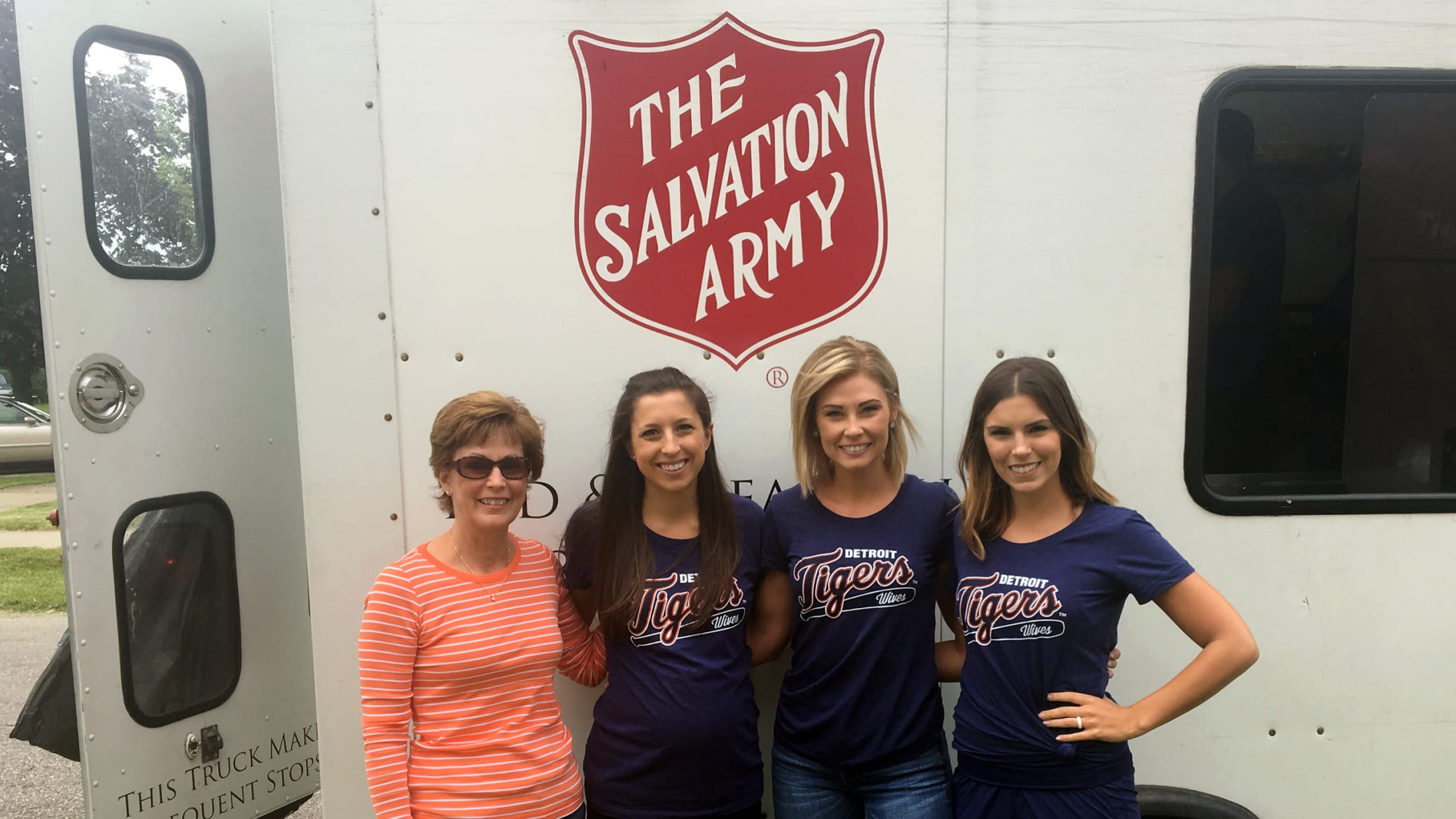 The Salvation Army Bed and Bread Trucks make various stops throughout the city of Detroit, in the areas that demonstrate the most need. Every day, the trucks provide food to the hungry and homeless in Detroit. Tigers Wives joined Salvation Army staff to prepare and serve meals from the Bed & Bread Trucks as they toured the city on their daily routes.